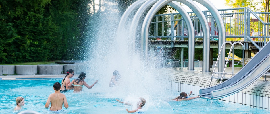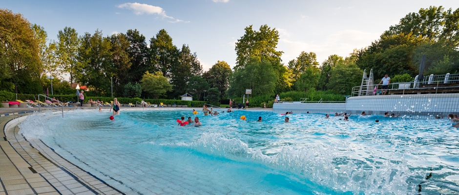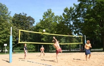 Kinderlandschaft – Wellenanlage – Bouleanlage – Freilandschach – Tischtennis – Beachvolleyball – Kletterturm