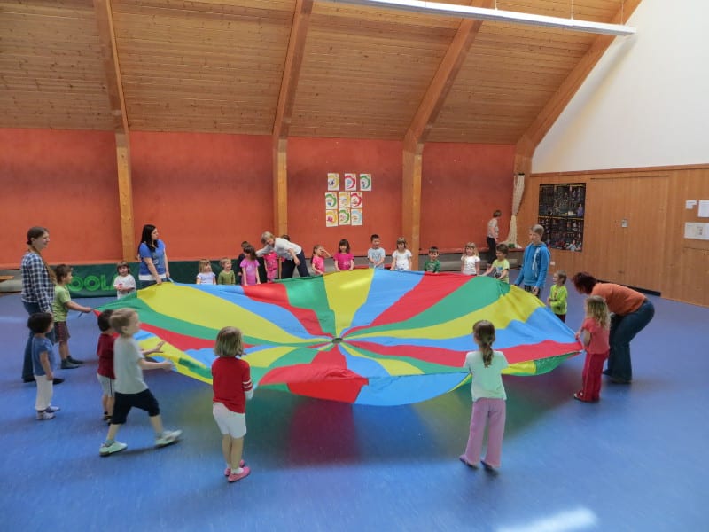 Das Mutter-Kind-Turnen findet seit 2003 einmal wöchentlich statt. Die Kinder spielen am liebsten frei und laufen umher. Bei schönem Wetter sind wir meist auf dem Spielplatz, ansonsten werden in unserer Turnhalle verschiedene Stationen aufgebaut. Auch die Mamas bringen immer wieder Spielideen mit. Dieses Jahr durften wir bei Zwerschkes ins Schwimmbad, da hatten wir einen Riesenspaß.