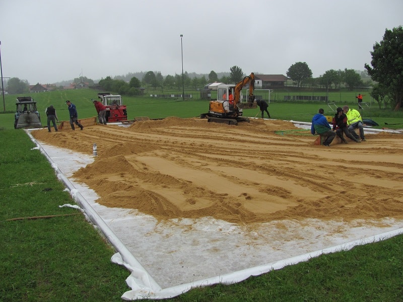 Erstellen eines Beachvolleyballplatzes am Sportplatz