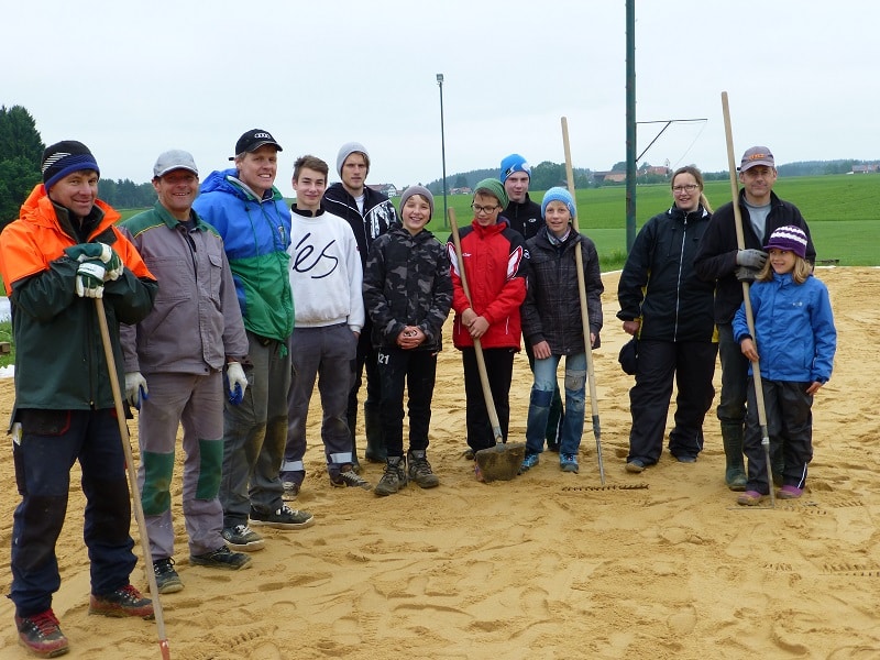 Nach nicht einmal 4 Monaten (im Februar haben wir mit der konkreten Planung begonnen) ist unser Beachvolleyballplatz nun fast fertig und unser Dorf hat ein weiteres Stück Zukunft gewonnen – das war in dieser Zeit und mit unserer finanziellen Ausstattung aber nur zu schaffen als wahres Gemeinschaftsprojekt. Über 60 Begeisterte aller Altersgruppen (von 8 bis 75 Jahren) waren mittel- oder unmittelbar mit ihrem Fachwissen und Ideen, mit ihrer Arbeitskraft, Materialspenden und ihren Geräten, Maschinen und Fahrzeugen, vor allem aber mit ihrer Zeit und ihrem Feuereifer dabei. Die Kosten für einen üblichen Beachvolleyballplatz konnten dadurch fast halbiert, und so neue Möglichkeiten für die sportliche Betätigung für Jung und auch Alt (z.B. Boccia, Beachsoccer, Beachvolleyball, Beachgymastik) und das sowohl im Vereins- als auch im Freizeitbereich ermöglicht werden – ein neuer Platz von allen für alle.